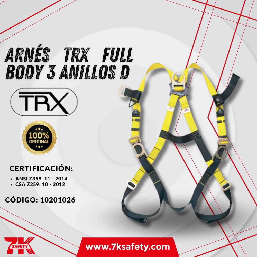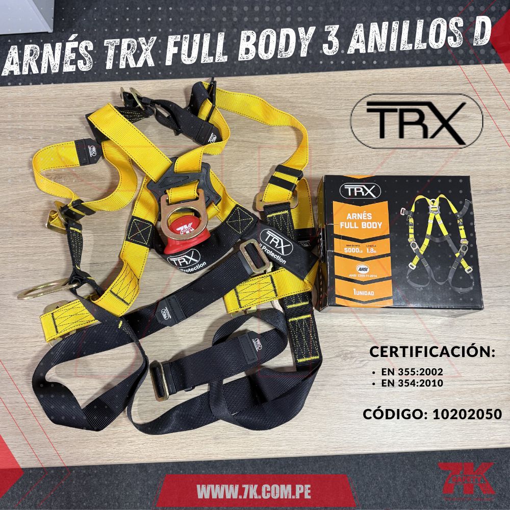 El Arnés TRX Full Body 3 Anillos D es un equipo de protección personal de alta calidad, diseñado para garantizar seguridad y estabilidad en trabajos en altura. Este arnés de cuerpo completo incluye 3 anillos en D estratégicamente ubicados (dorsal, esternal y lateral), que permiten una conexión segura para sistemas de detención de caídas, posicionamiento o rescate. Su diseño ergonómico y ajuste multipunto ofrecen un confort superior, mientras que los materiales resistentes garantizan durabilidad incluso en las condiciones más exigentes.