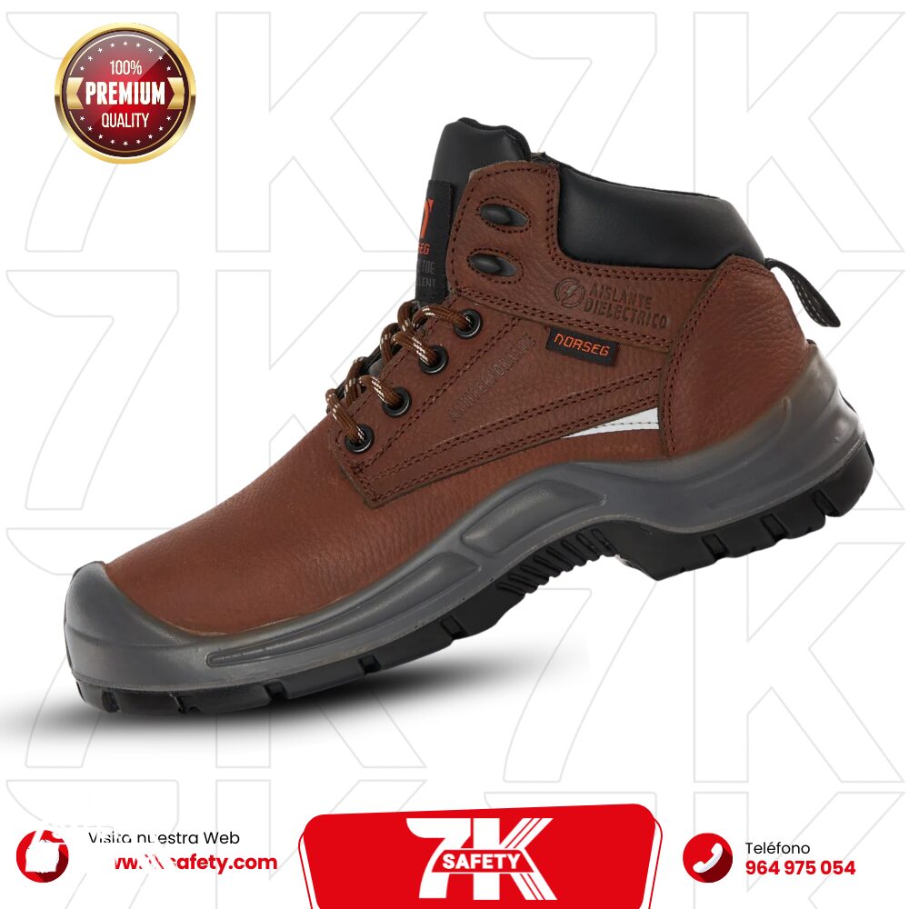 El Botín Rostock CT NS 588 Norseg está diseñado para brindar protección, confort y durabilidad en ambientes industriales exigentes. Fabricado en cuero de alta resistencia y equipado con puntera composite no metálica y dieléctrica, ofrece protección contra impactos y compresiones hasta 200J, siendo ideal para trabajos con riesgo eléctrico.