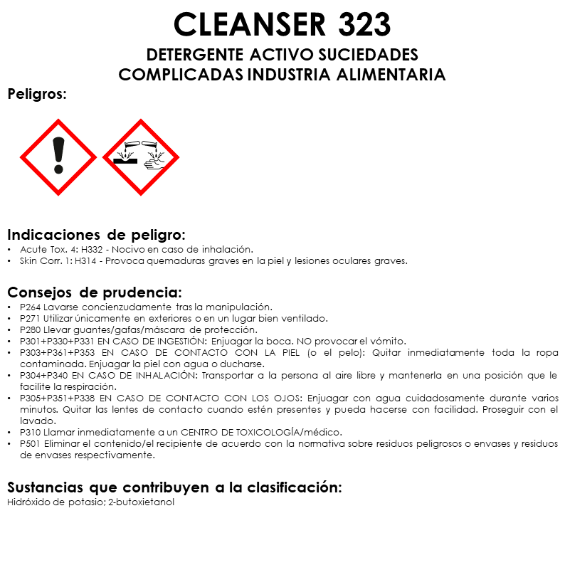 CLEANSER 323 es un detergente alcalino de alta potencia y espumante, especialmente diseñado para la limpieza en condiciones difíciles en Industria Alimentaria. Su fórmula potente y concentrada permite eliminar eficazmente la grasa, los residuos orgánicos y otros contaminantes difíciles en condiciones de limpieza desafiantes como las causadas por aceitunas verdes (grasa solidificada a bajas temperaturas), aceitunas negras (manchas de superficies), alpechín y derivados de la industria.