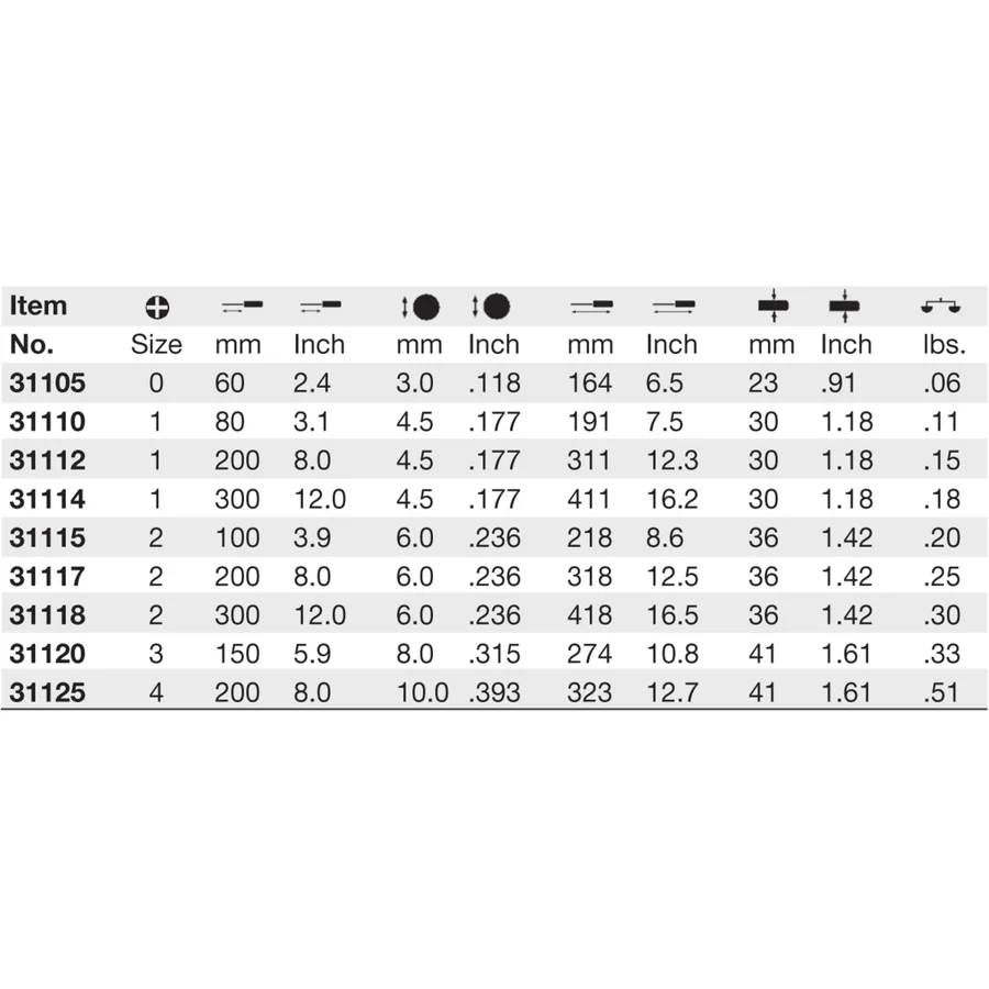 Cada hoja de desarmador punta estrella se endurece térmicamente con precisión para ofrecer años de vida útil, y las puntas cruz de los destornilladores están pulidas con precisión para un ajuste exacto, asi se eliminan casi por completo la posibilidad de que se salga la cabeza del tornillo.