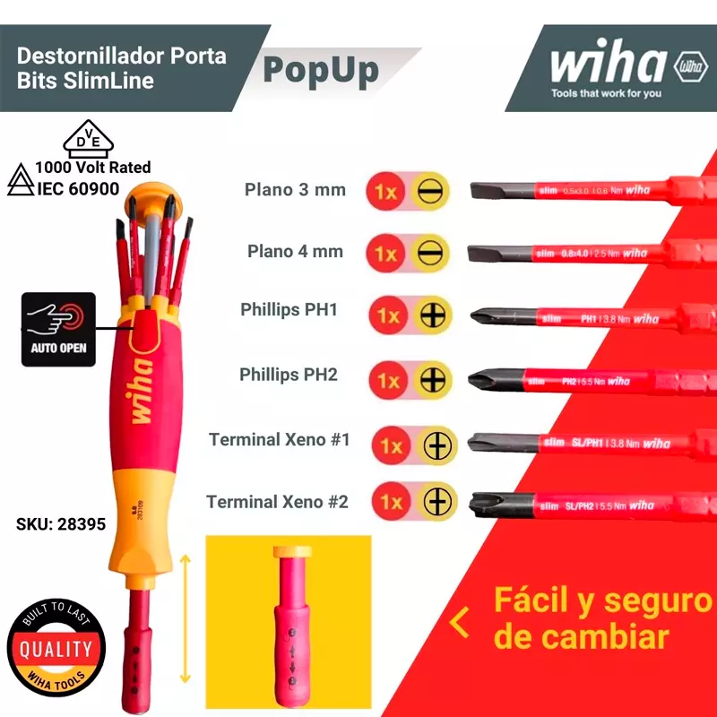 Destornillador MultiPuntas Dieléctrico Xeno SlimLine Mango Pop-Up Marca Wiha