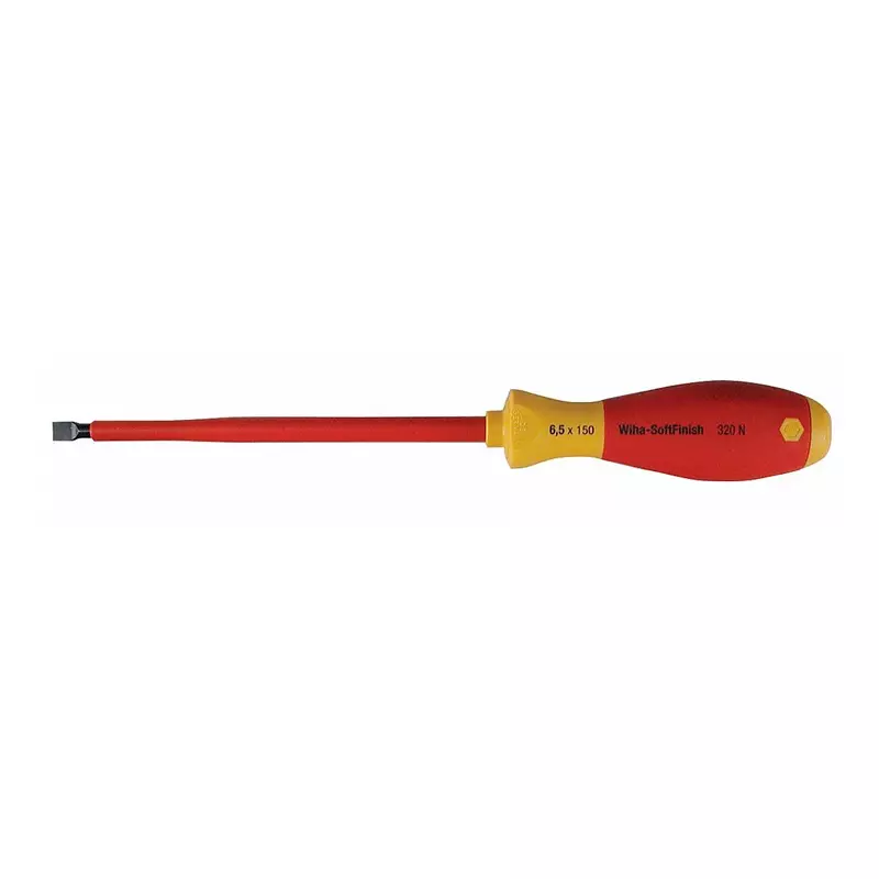 El Destornillador Plano Aislado 1000V de Wiha está construido con el mejor acero alemán C70 y aislamiento dieléctrico SoftFinish con certificación VDE60900. Primero, la variedad desarmadores punta plana dieléctrica en Wiha es la más grande del mercado con puntas desde 2.0mm hats 10mm y varillas desde 60mm a 200mm de largo.