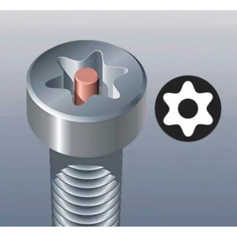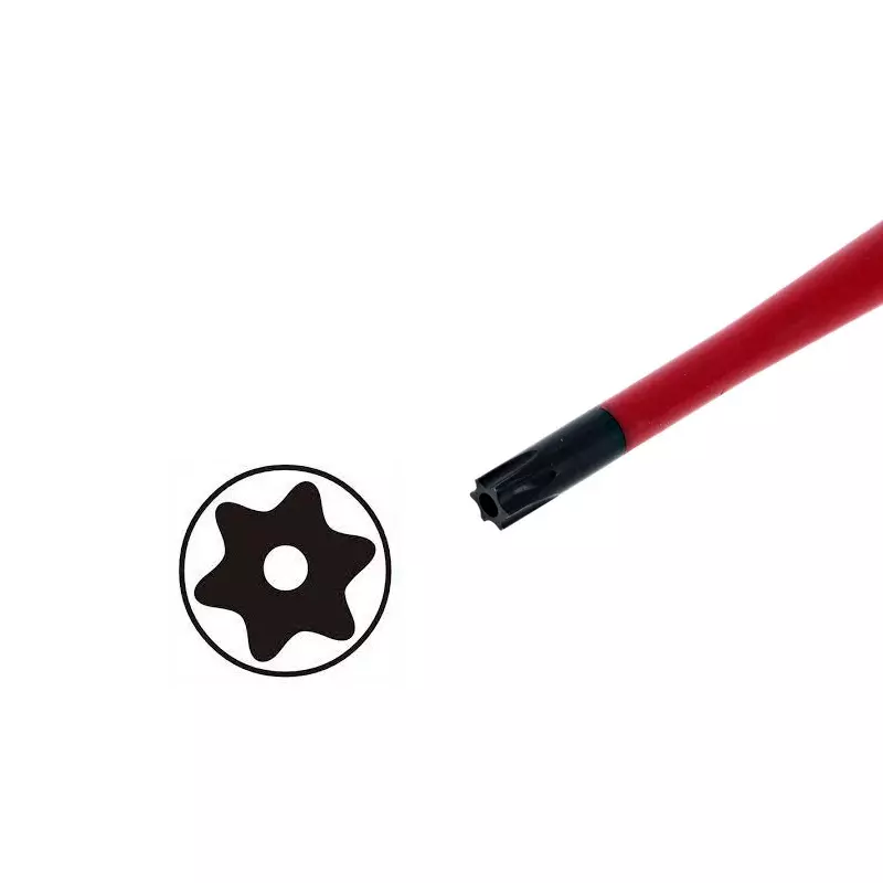 El Destornillador TORX hembra security dielectrico de Wiha, es una versión conocida como, Tamper-Resistant Torx (a menudo abreviado como Torx TR) o pin-in Torx contiene un pin en el centro de la cabeza que impide que se inserte un destornillador Torx estándar (o un destornillador recto).
