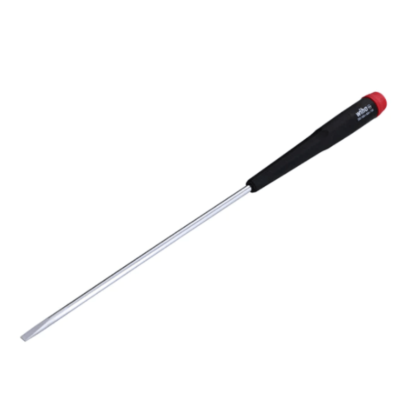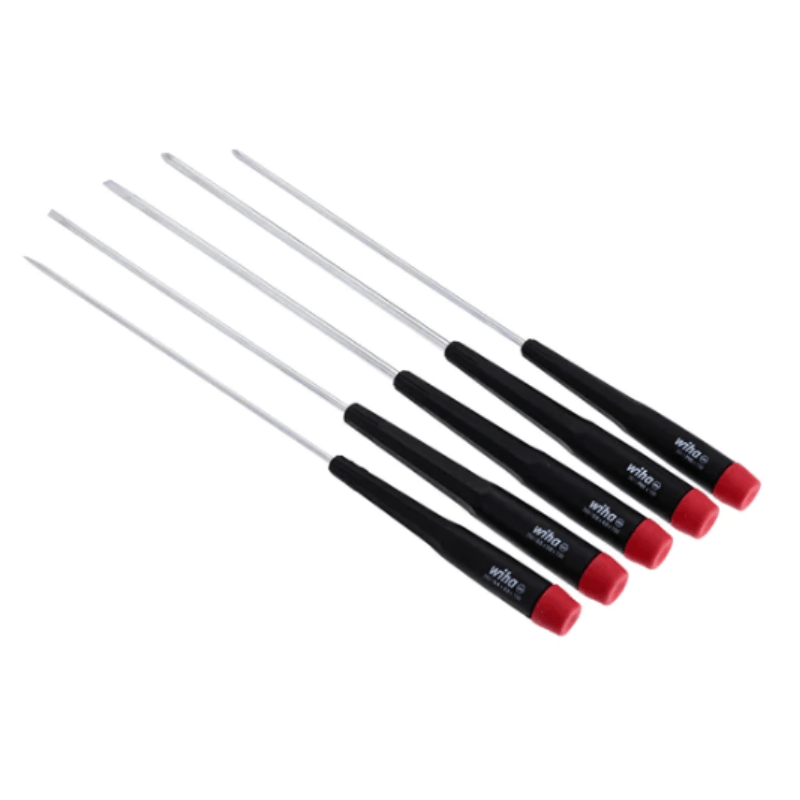 Los destornilladores perilleros de precisión largos Wiha cuentan con mangos con agarre acolchado para mayor comodidad y control, y el material de doble dureza está moldeado directamente en la hoja para una unión permanente. El estilo Precision incluye un agarre para los dedos de perfil hexagonal para un torque preciso y un mango cónico para una rotación rápida.