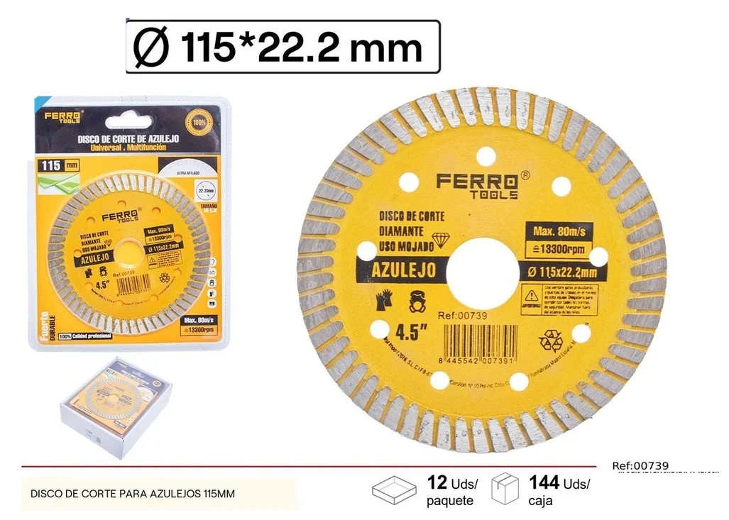 Un disco de corte para azulejos 115×22.23mm es una herramienta especializada diseñada para realizar cortes precisos en cerámica, porcelana y otros tipos de azulejos. Su diámetro y grosor permiten que sea utilizada en diversas máquinas, asegurando versatilidad en su aplicación.