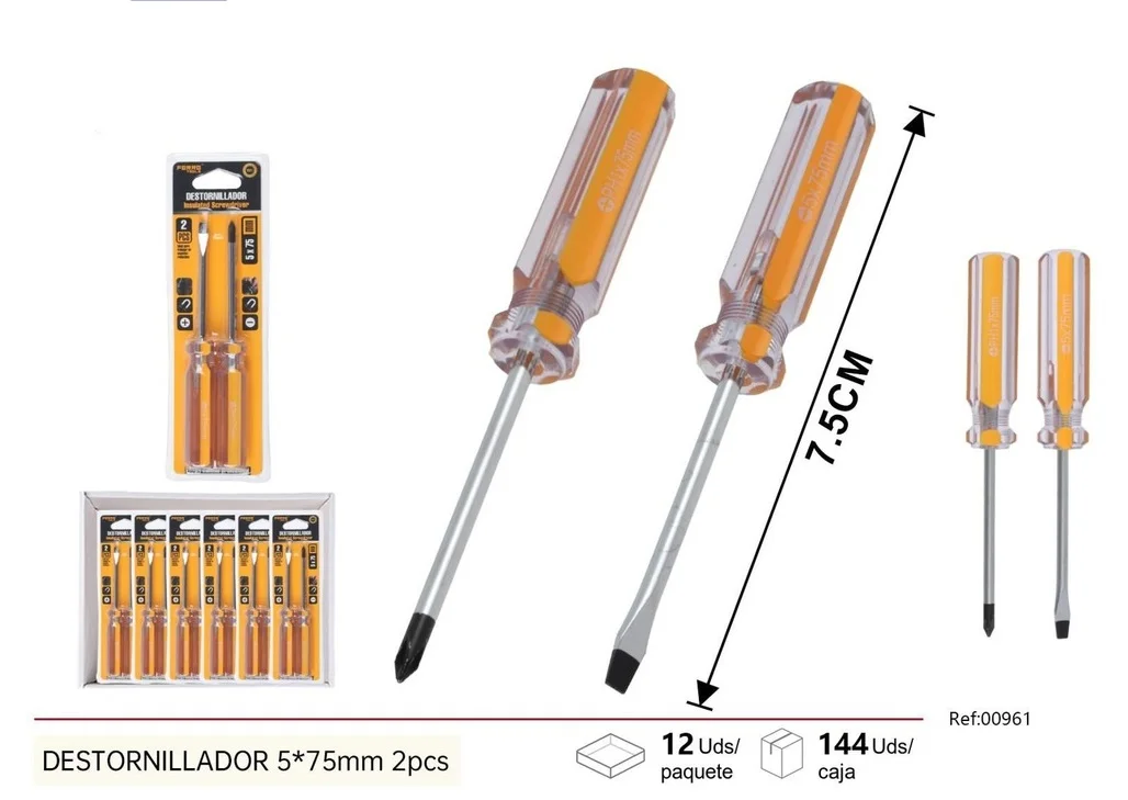 Con una longitud de 575mm, son ideales para alcanzar tornillos en espacios difíciles. Estos destornilladores son perfectos para trabajos tanto en el hogar como en entornos profesionales. Su mango amarillo brillante facilita su localización en medio de otras herramientas.