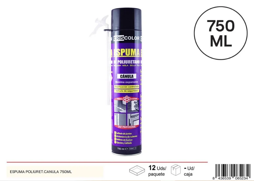 Transforma tus proyectos con una herramienta versátil y eficaz. La espuma de poliuretano de 750 ml es tu aliada perfecta para garantizar acabados impecables y duraderos. ¡Hazla parte de tu kit hoy mismo!