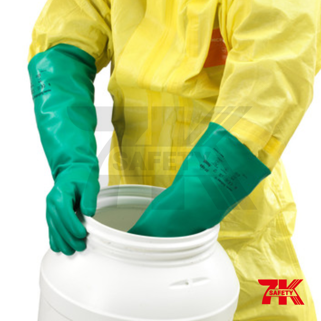 - Protección especializada: La composición de nitrilo de alto rendimiento otorga protección química EN 374 Tipo A, cubriendo hasta el codo.