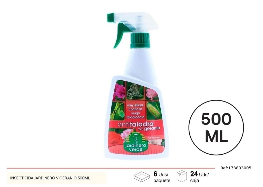 El insecticida jardinero v. geranio 500ml es una solución efectiva para proteger tus plantas de plagas indeseadas. Diseñado específicamente para ser seguro en su aplicación y altamente eficaz, este producto es ideal para mantener un jardín saludable.