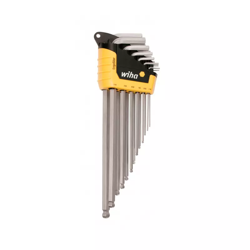El Juego de 13 Llaves Hexagonales en pulgadas desde 0.050″ a 3/8″Extra largas Cabeza Redonda en estuche Ergostar de la marca Wiha es una herramienta imprescindible para cualquier profesional o aficionado al bricolaje que necesite una herramienta de alta calidad y precisión. Este juego de llaves Allen cromadas es ideal para trabajos de alta precisión, gracias a su diseño ergonómico y durabilidad.