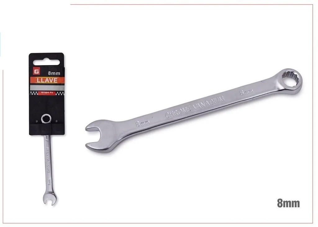 Esta llave se emplea para apretar o aflojar tuercas y tornillos de tamaño 8mm, siendo ideal tanto para proyectos de bricolaje en el hogar como para reparaciones en automóviles. Es un componente clave en cualquier kit de herramientas.