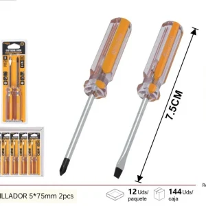 El set incluye un estuche compacto que permite un almacenamiento ordenado y fácil transporte. Esto asegura que cada destornillador esté siempre a mano, listo para cualquier proyecto que surja.