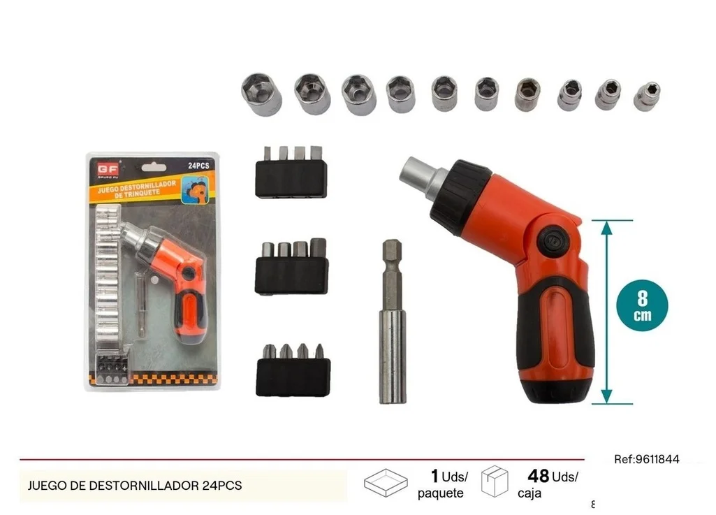 El set de destornilladores de 24 piezas es la herramienta ideal para cualquier aficionado al bricolaje o profesional. Con una variedad de tamaños y tipos, este conjunto ofrece versatilidad para atender diversas necesidades de reparación y ensamblaje.