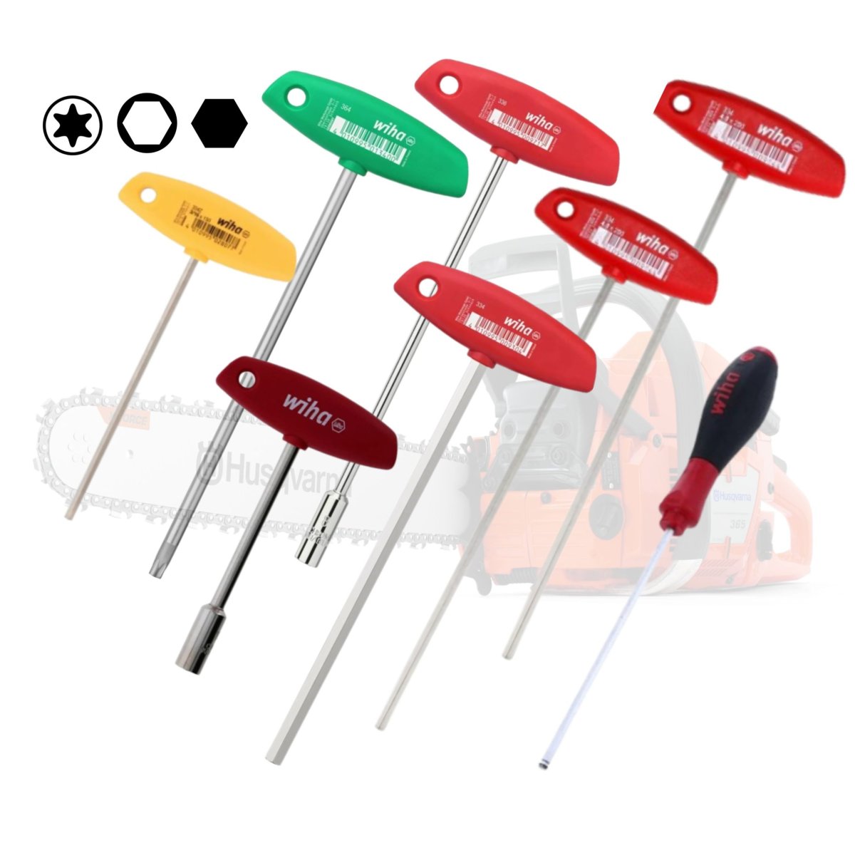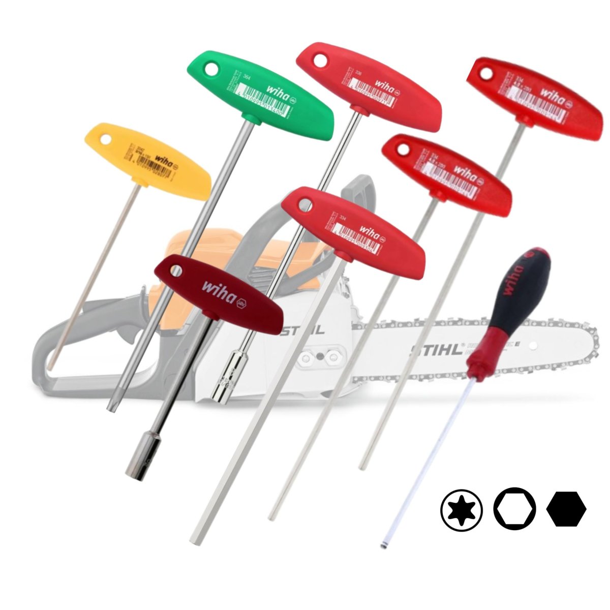 Optimiza tus tareas de mantenimiento con el Set de Llaves Allen y Torx Wiha, diseñado específicamente para la reparación de motosierras Stihl y Husqvarna. Este conjunto de herramientas de fabricación alemana garantiza precisión, durabilidad y eficiencia en cada intervención.