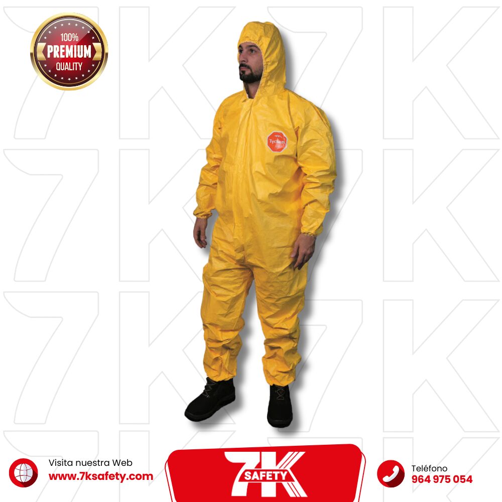 El Tychem 2000 proporciona una barrera eficaz frente a salpicaduras, aerosoles líquidos y polvo tóxico, cumpliendo con los estándares de protección Tipo 3, 4, 5 y 6. Su diseño incluye una capucha de tres piezas, solapa doble sobre el cierre y puños elásticos, asegurando un sellado completo contra contaminantes.